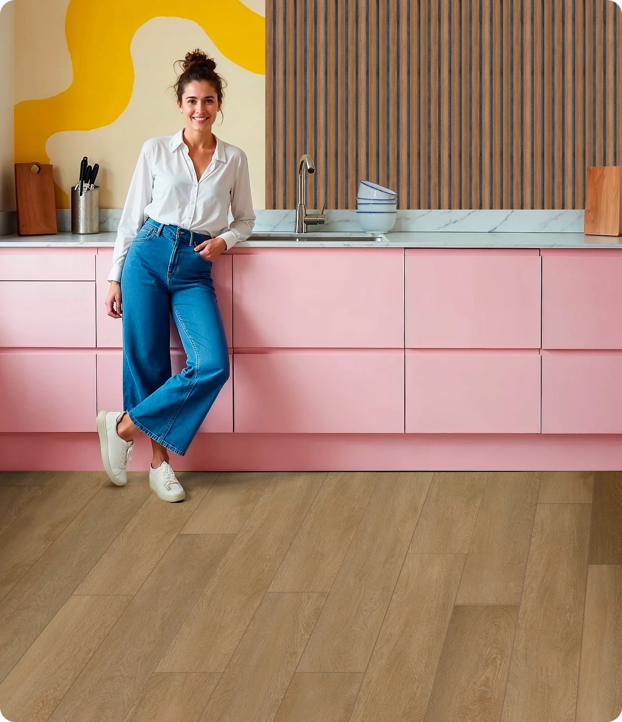 Wir sind deine kiwi family – und wir bringen Style, Nachhaltigkeit und cooles Design in dein Zuhause. Ob als Holzboden oder Wandpaneele, mit mir gestaltest du Räume, die optisch beeindrucken, sich gut anfühlen und nachhaltig konzipiert sind. Gefertigt aus 80% echtem Holz und mit 100% Personality, stehe ich für langlebige Oberflächen mit Charakter. Ganz gleich ob du auf mir läufst oder mich einfach bestaunst – ich mache dein Zuhause stilvoll bis in die letzte Ecke.